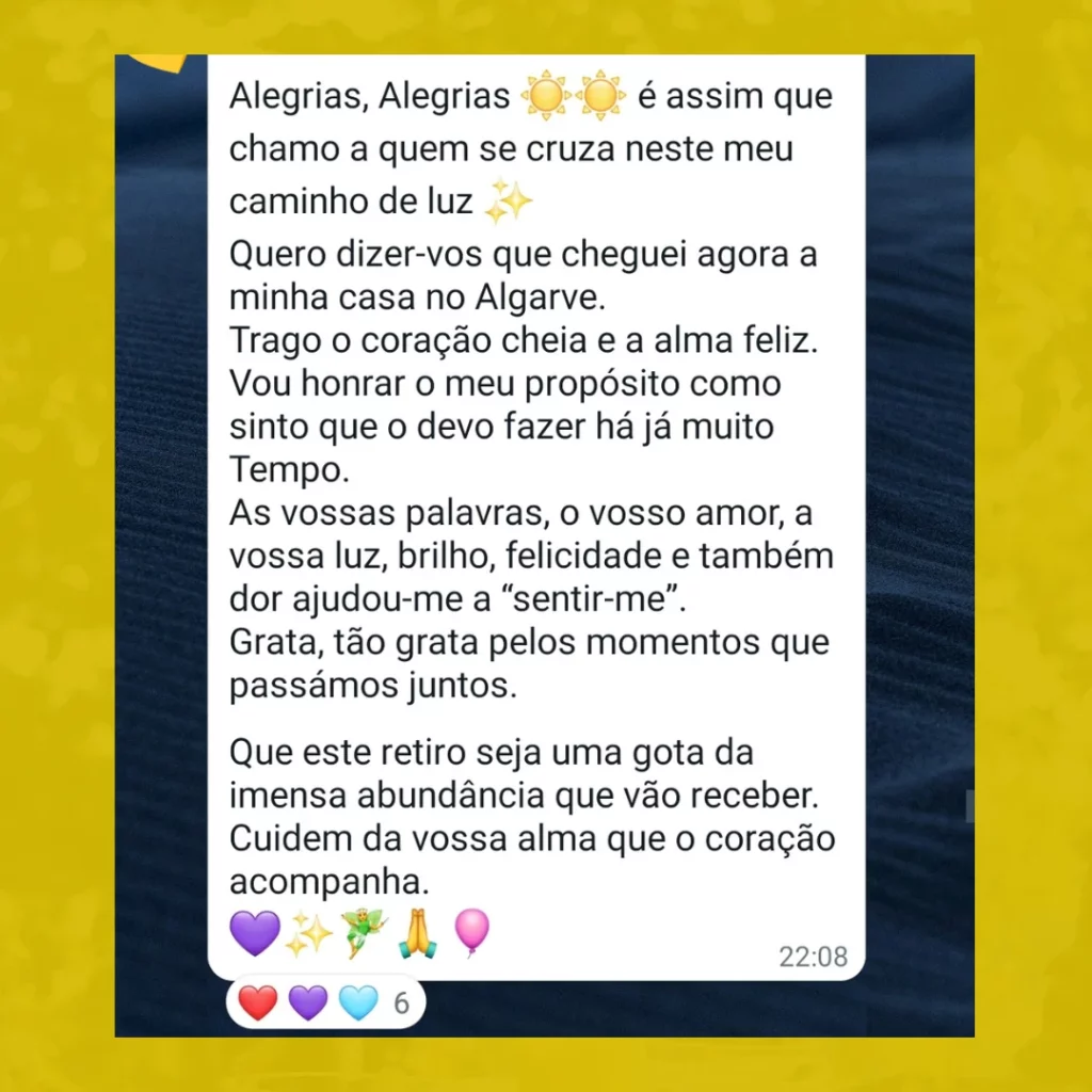 Encontra clareza e renova-te. Permite-te embarcar nesta jornada única de cura, onde cada momento é uma oportunidade para te redescobrires, aprenderes e cresceres.